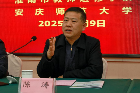 淮南市教师进修学校副书记陈涛进行总结讲话,他提出三点期望:一是要求学员提高政治座位,强化责任担当,将学习成果转化为破解教育难题的实践能力;二是倡导以问题为导向的研修方式,鼓励学员带着学校发展中的真实案例开展研讨;三是强调纪律意识与团队协作,希望全体成员共同营造严谨务实的学习氛围。