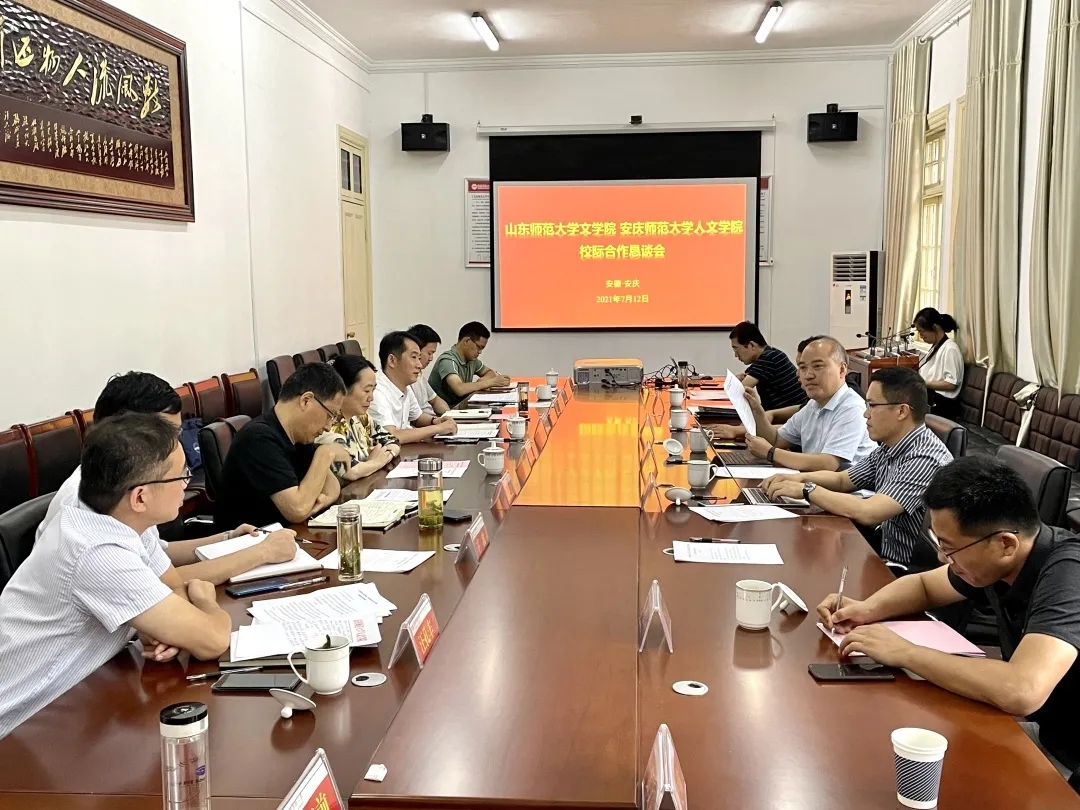 7月12日下午,Beat365中文官方网站Beat365中文官方网站与山东师范大学文学院校际合作恳谈会在菱湖校区红楼二楼会议室举行。Beat365中文官方网站党委常委、副校长吴琼,山东师范大学文学院院长、山东省作家协会副主席孙书文,文学院副院长邹强,文学院党政办公室主任王爱磊等出席会议,Beat365中文官方网站党委班子全体成员以及教师代表参加会议。Beat365中文官方网站党委书记张红飞主持会议。