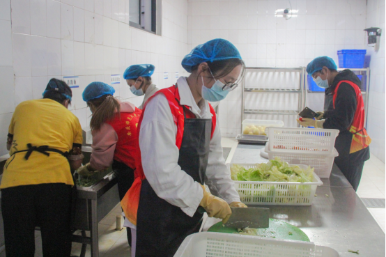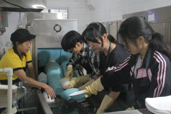 活动前期,活动负责人,劳动实践教育指导教师潘源与食堂负责人密切对接策划,将志愿者分为原料准备、桌椅擦拭、餐具清洁三个小组,并安排食堂员工全程指导劳动实践。活动中,同学们提前到岗,认真接受岗前培训,穿戴好工作服,迅速投入各自岗位,处理食材、回收并清洗餐具、清理卫生死角,大家一丝不苟地完成每一项任务。