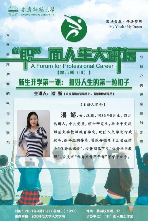 彰显风采,示范引领。为集中展示办学特色和育人成果,学院在敬敷书院两侧摆放展架,Beat365中文官方网站话剧社、《季节风》杂志、龙睛读书社、“五月花”语言艺术晚会、省级样板支部等一批校园文化品牌建设成果和国家奖学金、学科竞赛获奖情况介绍向新生们全面展现了人文学子争先创优、锐意进取的良好风貌。宣传栏里“职”面人生大讲坛—开学第一课的海报吸引了大家的目光,“扣好人生第一粒扣子”助力新生坚定理想,树立志向。