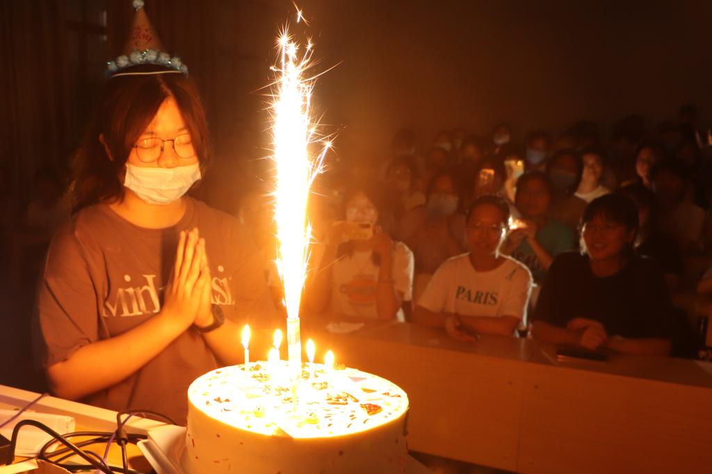 来自中国语言文学类2021(1)班的杨雨婷是开学日的另一位“寿星”,生日会上,她也和王青一样,与身边的同学一起分享了自己的生日蛋糕。对于学校准备的惊喜,杨玉婷这样评价:“和父母送我的蛋糕和祝福不一样的是,学校筹备的生日会更意外,让我在开学伊始就get到了学校的心意,我觉得这也是我和学校的一种非常奇妙缘分。”
