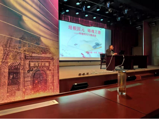 张永威老师以“培根固元 铸魂立德”为题,分别从师德、师风两个方面对教师这一特殊、光荣而神圣的职业进行了深入解读,张老师希望同学们能够认真领悟当前教育政策的新形势,自觉主动融入师德师风教育中,忠诚于党的教育事业,爱校、爱班、爱学生。