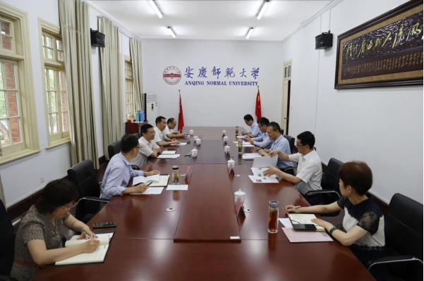 6月14日,安徽省政协文化文史和学习委员会主任穆聪贵、文史资料研究室副主任陈永,安庆市政协副主席王晓辉等一行5人来Beat365官网就“全省文化认同”开展专题调研。