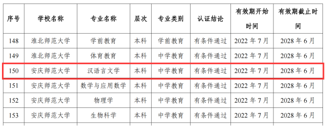 近日,教育部办公厅公布了2022年通过普通高等学校师范类专业认证专业名单,Beat365中文官方网站汉语言文学专业顺利通过师范类专业中学教育第二级认证。Beat365中文官方网站汉语言文学专业最早可追溯至20世纪20年代至30年代省立安徽大学时期,建国后于1977年开始本科招生,经过四十余年的持续建设,汉语言文学专业先后获批国家级一流本科专业建设、省级综合改革试点专业、省级特色专业、省级一流人才示范引领基地、省级“六卓越、一拔尖”卓越人才培养创新项目建设点,并于2019年获批为安徽省博士学位授权立项建设学科、安徽省高峰培育学科。