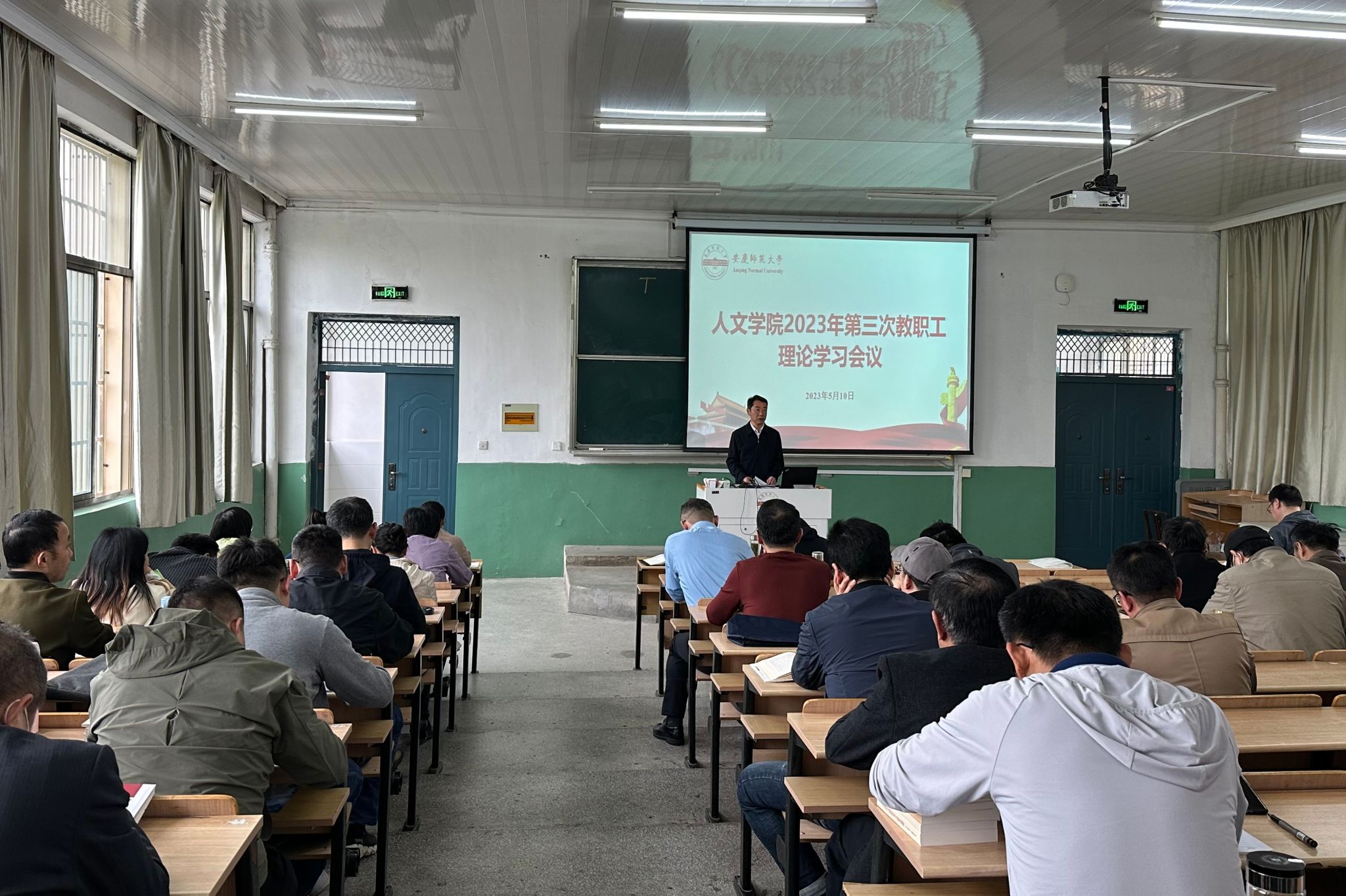 5月10日下午,Beat365中文官方网站在菱湖校区理三阶教室召开2023年第3次教职工政治理论学习会,深入学习习近平总书记在学习贯彻习近平新时代中国特色社会主义思想主题教育工作会议上的重要讲话精神,传达学习校第二次党代会精神,开展廉政风险防控警示教育。学院领导班子成员出席会议,全体教职员工参加了学习会。