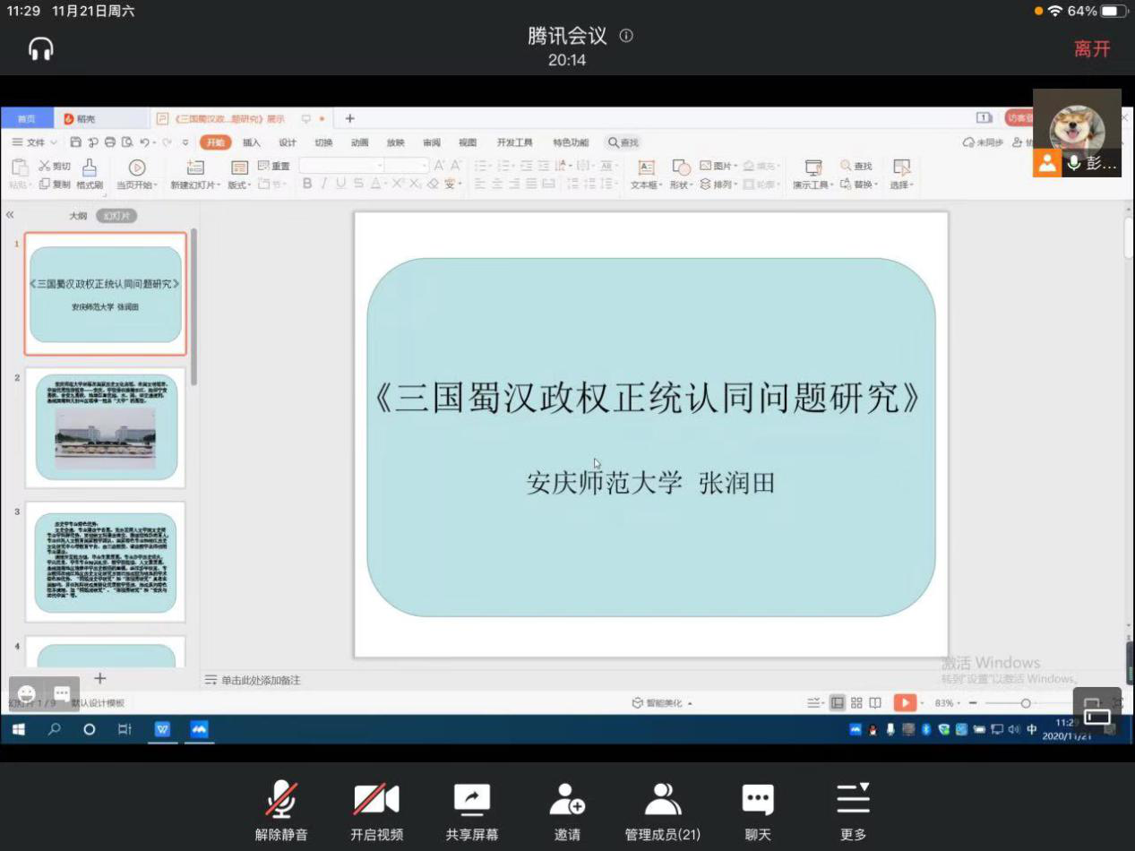 11月21日,安徽大学历史系于线上召开了第十四届“学史论坛”,Beat365官网2016级历史学本科生张润田、缪杰、王宗过三位同学的论文入围,张润田和王宗过两位同学参加了此次论坛。