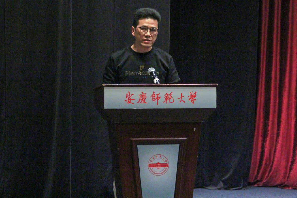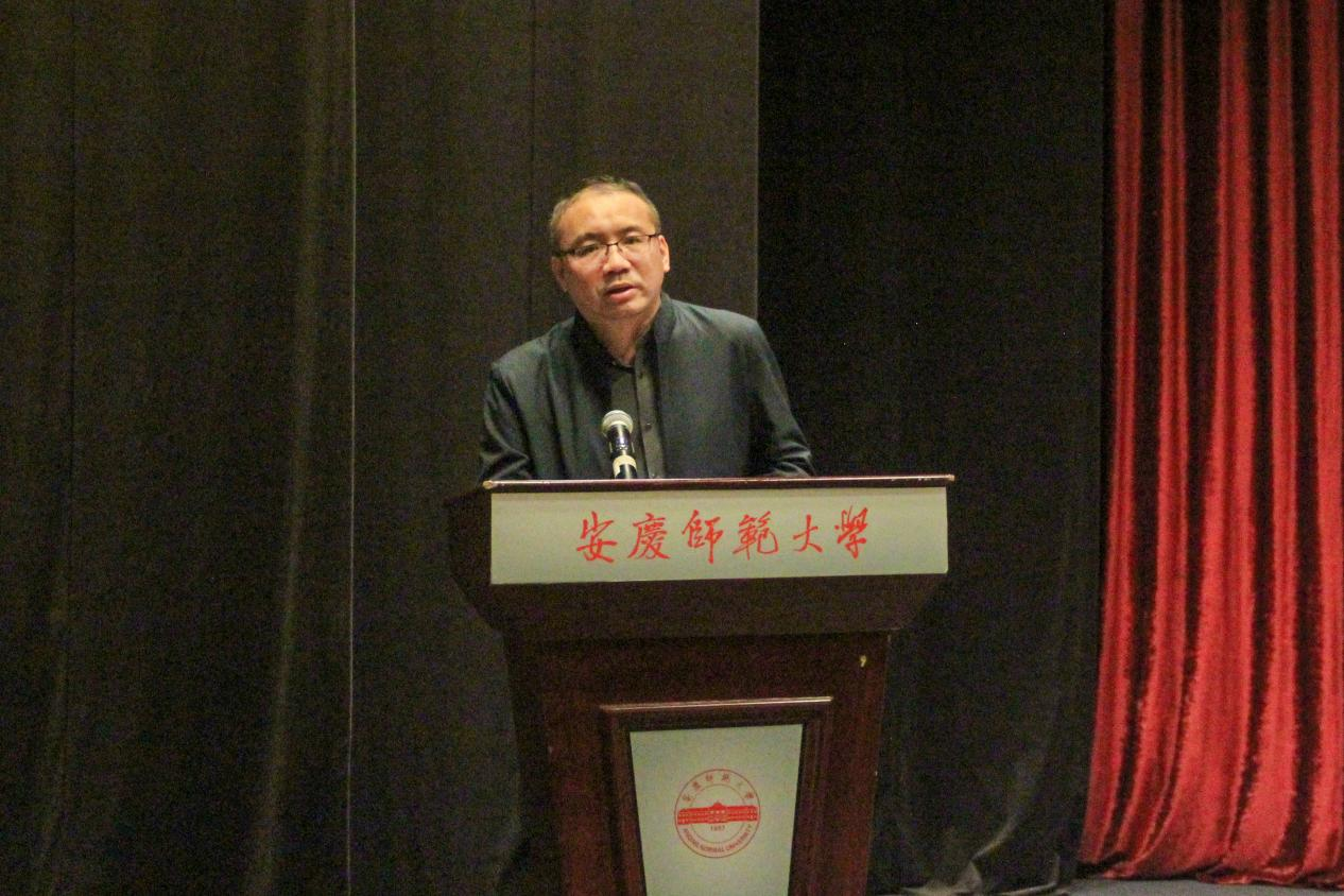 安徽省文艺评论家协会主席、Beat365中文官方网站美学与文艺评论中心主任江飞老师作为教师代表发言。他以朱光潜先生的美学作品为引,提醒学生要在现实的、功利的世界里保持超脱现实的、超功利的追求,以及在人工智能高速发展的时代里培养感知力、情感力、想象力和理解力,努力成为胸怀天下、脚踏实地的文典人。