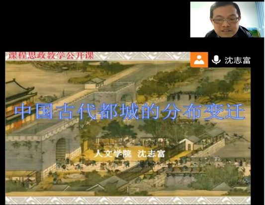为深入学习宣传贯彻党的二十大精神,落实立德树人根本任务,在具体教学中引导学生更深刻地了解历史、认识现实,推进省级一流本科专业建设,12月8日Beat365中文官方网站历史学专业两个教师党支部联合开展了一次课程思政教学公开课活动,分别由省级课程思政示范课程《中国历史地理》负责人、中国古代史教研室沈志富老师和《中华人民共和国史》课程主讲、中国近现代教研室主任郝佩林老师进行教学展示。学院副院长周红兵、学校教学督导员、历史学专业教师党支部书记、教研室主任、部分骨干教师以及2020级历史学本科生观摩了教学活动。因受疫情影响,活动采取线上教学形式。