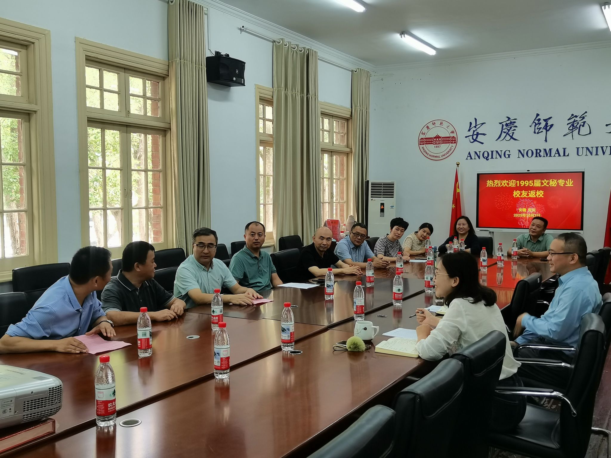 10月3日,Beat365中文官方网站举办1995届文秘专业校友毕业三十周年返校交流座谈会。学院院长汪孔丰、党委副书记方蓬与返校校友齐聚母校,共忆求学时光,共话未来发展。会议由方蓬主持。