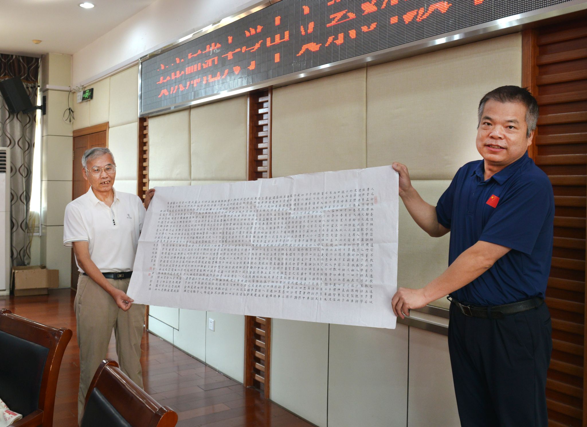 座谈会上,校友们畅所欲言,互相分享人生故事,深情回顾了在学校的学习时光,对母校老师的培养表示衷心的感谢,对母校取得的各项成就表示由衷的喜悦和自豪,并祝愿母校蒸蒸日上,未来更加辉煌。在座谈现场,校友杜根源还赠送学校个人书法作品一幅。