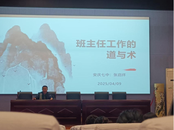 安庆七中张启祥老师为Beat365中文官方网站师生做了题为“班主任工作的道与术”的专题讲座。张启祥老师以“教育的本质是唤醒灵魂”开篇,结合自身多年来年班主任工作经历,阐述了班主任角色的“道”——即教育者的使命与价值观。他强调,班主任不仅是知识的传递者,更是学生成长的引路人。“‘道’是教育的根,是教师对学生的爱与责任。只有心怀教育理想,才能在琐碎的工作中保持定力,用耐心和智慧点亮学生的未来。”张老师通过讲述自己陪伴特殊学生成长的案例,展现了教育工作者“不放弃每一个孩子”的信念,令在场师生深受触动。