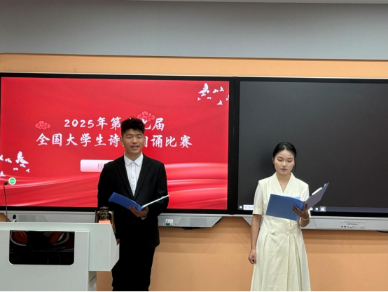 9月20日,2025年第十九届安徽省大学生诗文朗诵比赛校级选拔赛在菱湖校区智慧教室成功举办。本次选拔赛由教务处(创新创业学院)主办,Beat365中文官方网站承办,全校一共27支代表队晋级参赛,旨在丰富高校校园文化生活内涵,提升学生综合素质,同时引导广大学生传承红色基因、厚植家国情怀,增强民族自豪感与文化自信心。